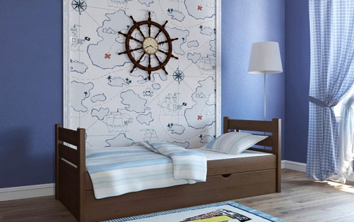 Кроватка идеально вписалась в интерьер детской комнаты в морской тематике. Так уж вышло, что сыну нравится море)). Теперь в такой кроватке мой маленький капитан помимо сна устраивает игры, фантазирует, представляет, что он плывет на корабле. Ну и конечно кроме дизайна хочется подчеркнуть функциональность этой кровати – внизу вместительный ящик, можно раздвигать по мере роста ребенка, так что служить будет долго, а с надежными бортиками я абсолютно спокойна, что мой сын не упадет во время сна.